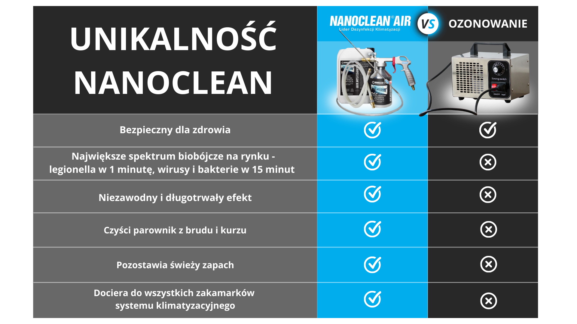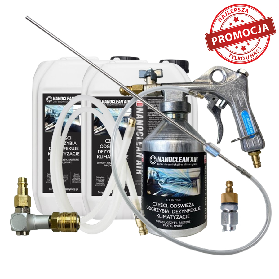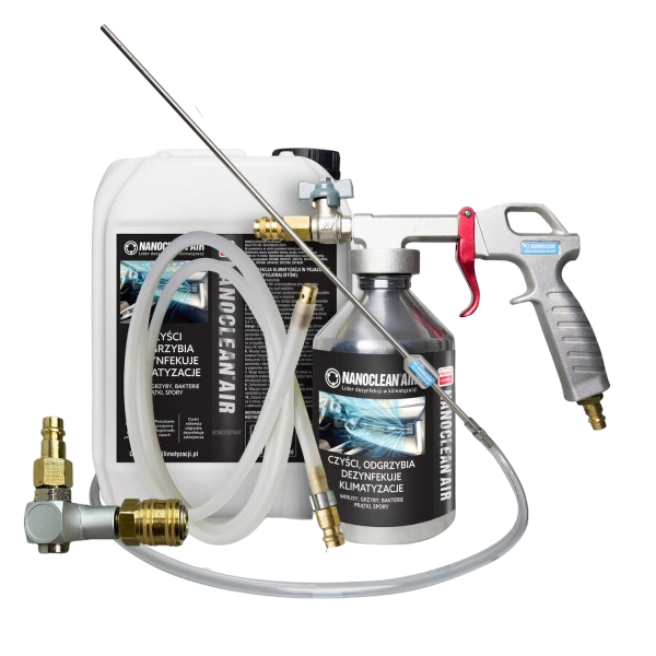 Zestaw NANOCLEAN®AIR zawiera wszystkie niezbędne narzędzia i środki do kompleksowego wykonania usługi dezynfekcji