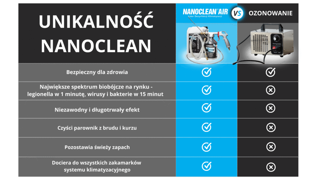 - Dezynfekuje klimatyzację oraz całą kabinę samochodową